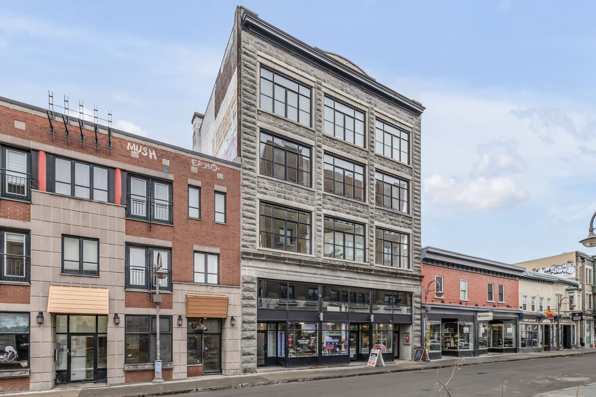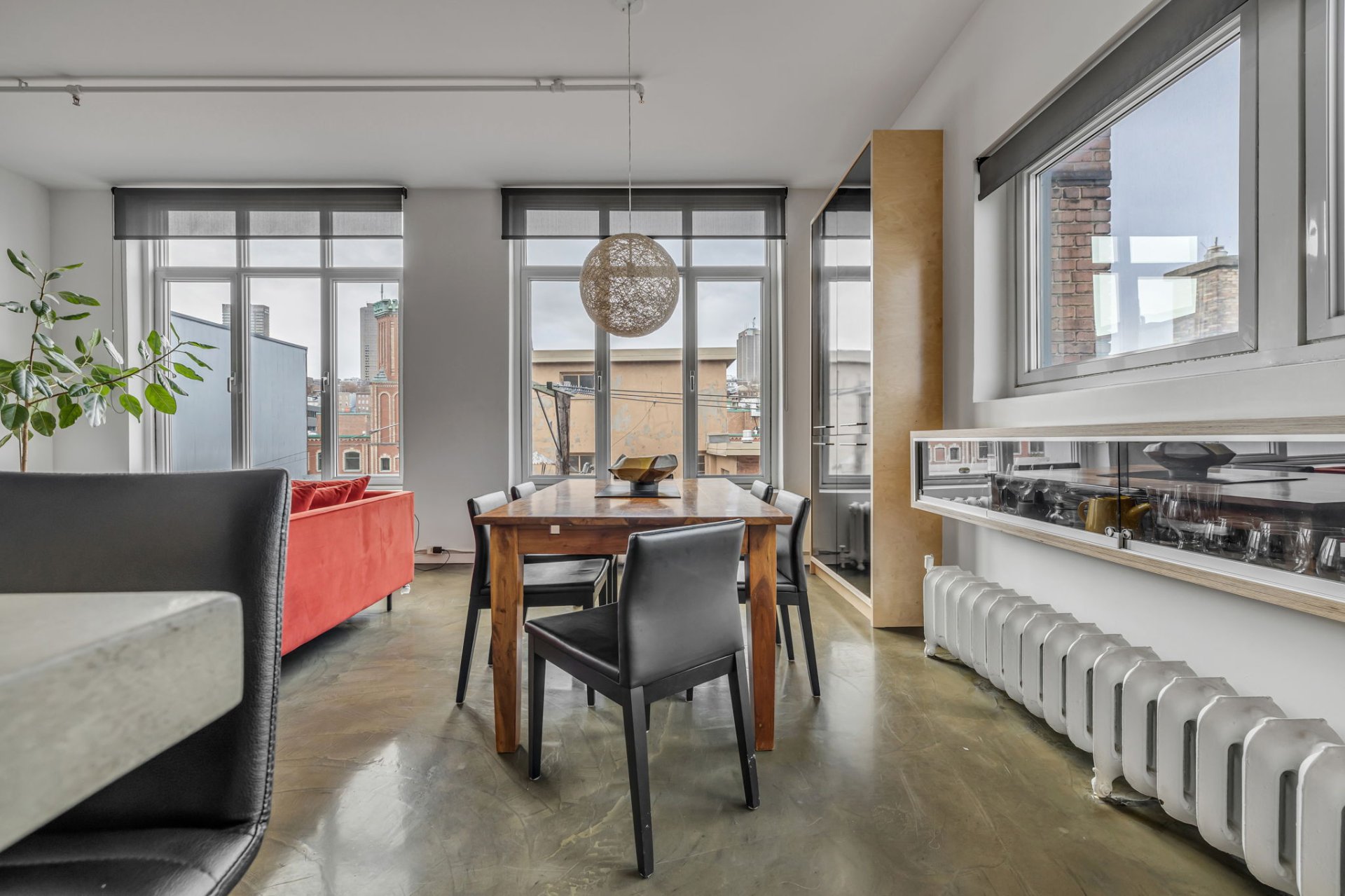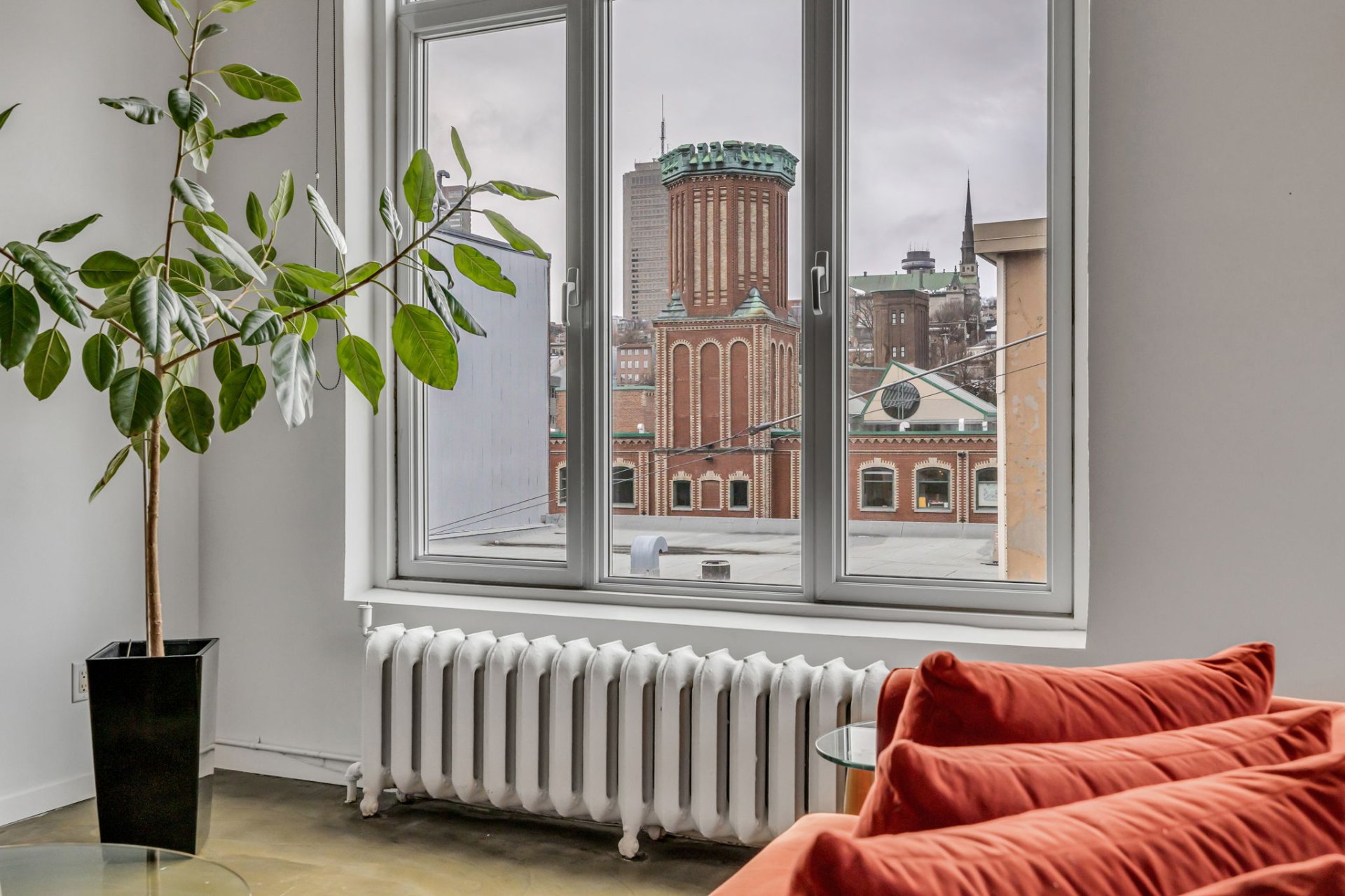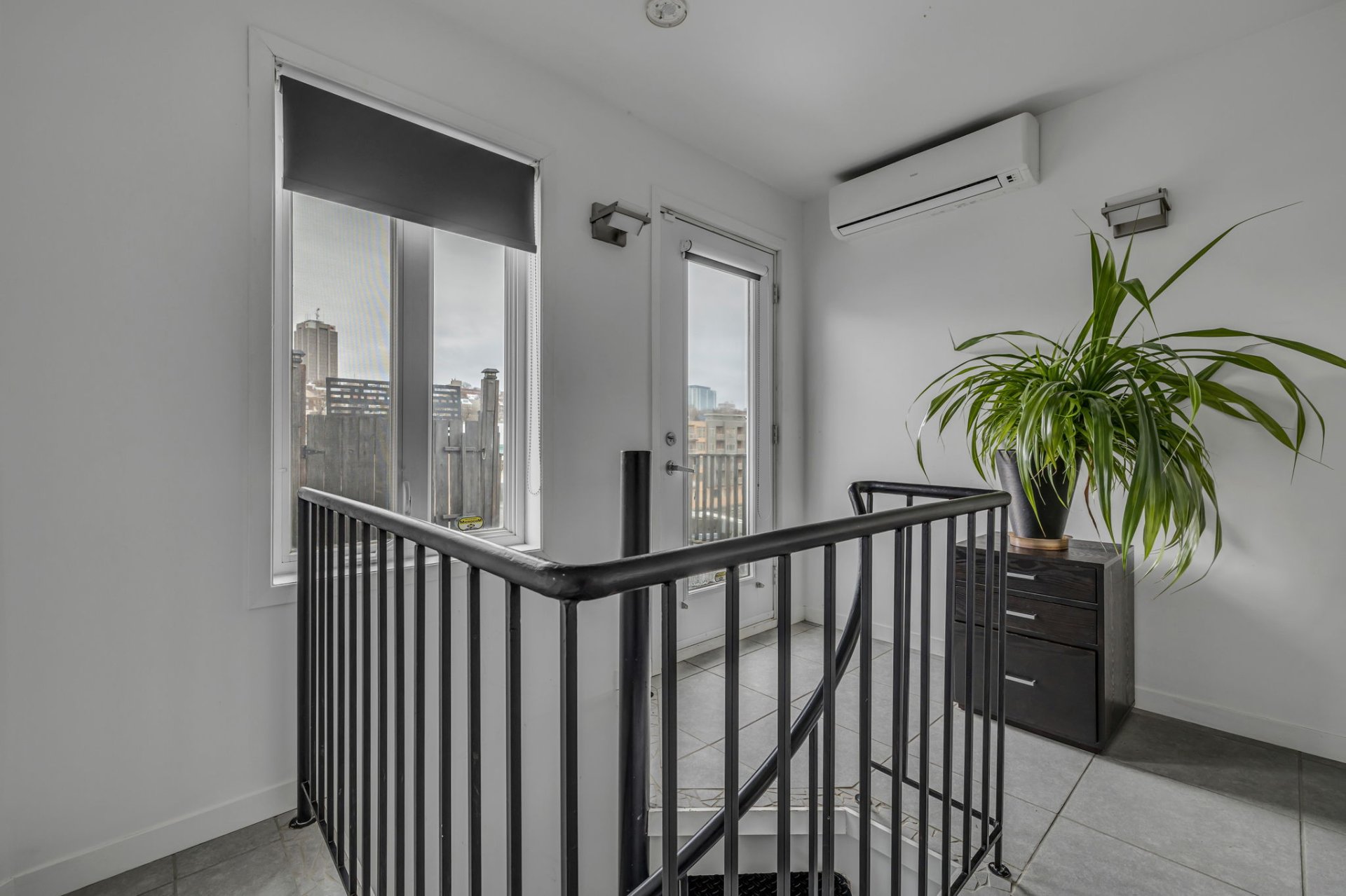Situé au coeur de la ville! Cette unité unique offre d'immense pièces de vie ainsi qu'une fenestration abondante. L'orientation Sud-Ouest garantit un ensoleillement exceptionnel autant dans l'unité que sur sa terrasse privée. Plafonds de 11 pieds, 2 climatiseurs muraux, un espace bureau au 2e niveau, terrasse privée avec une vue panoramique sur la ville, garage privé, multiples rangements dans l'unité, un rangement au sous-sol. À proximité : Théatres, bibliotheque, restaurants, etc. Profitez de cette occasion rare dans un secteur en demande !