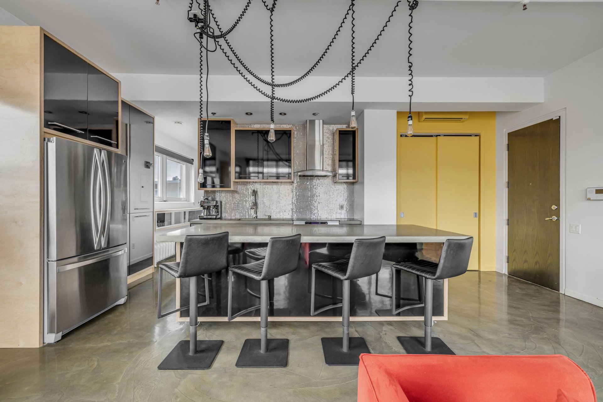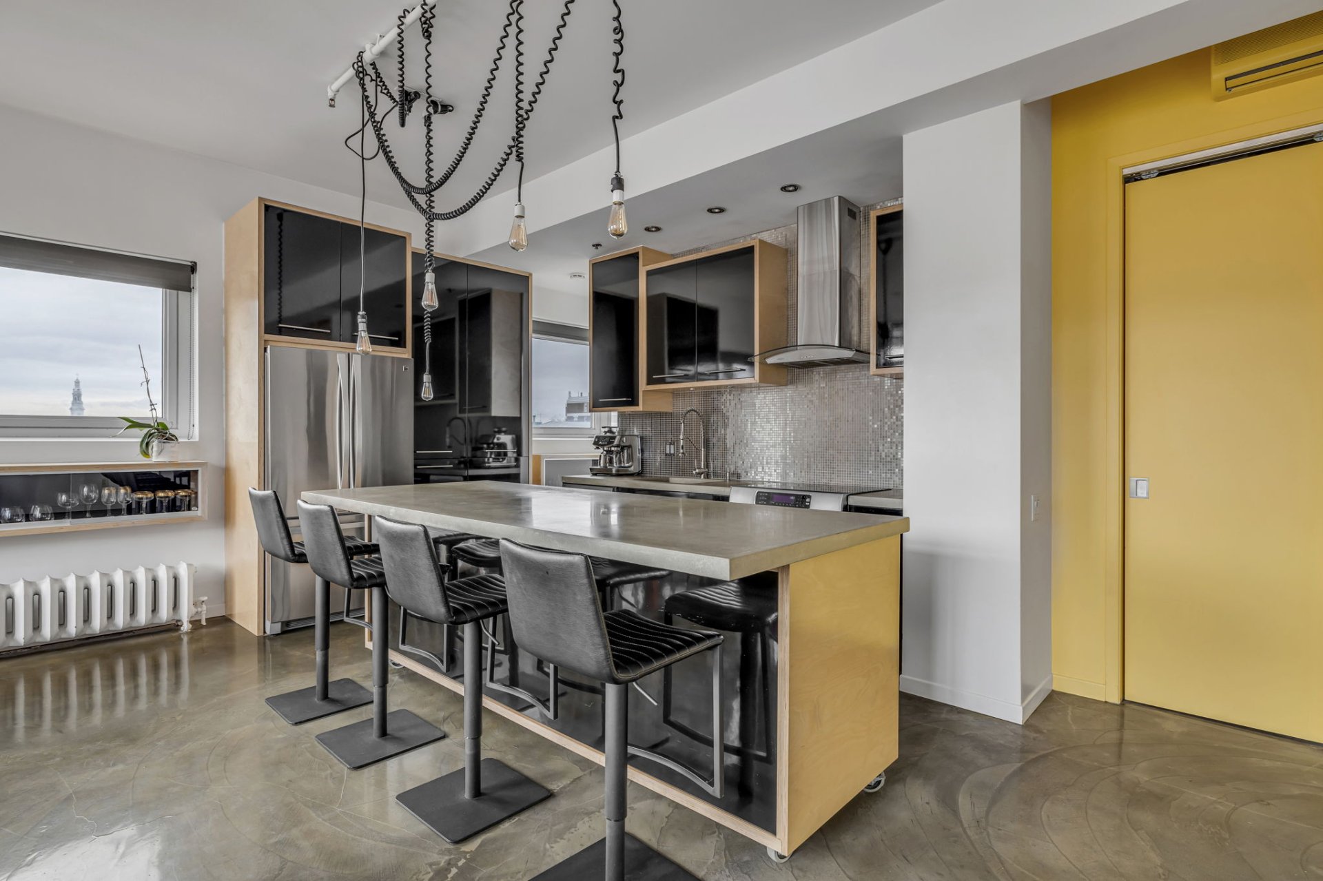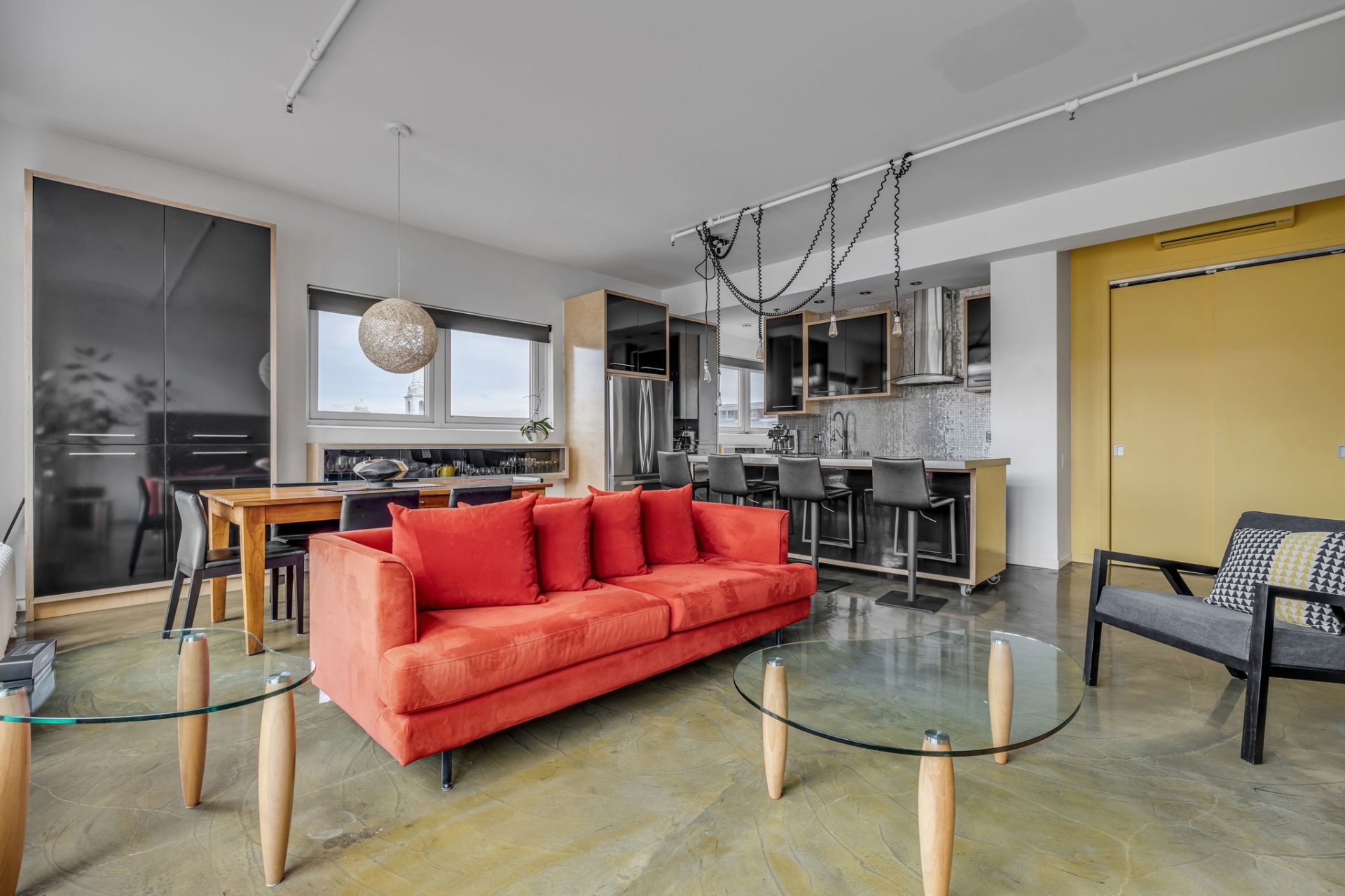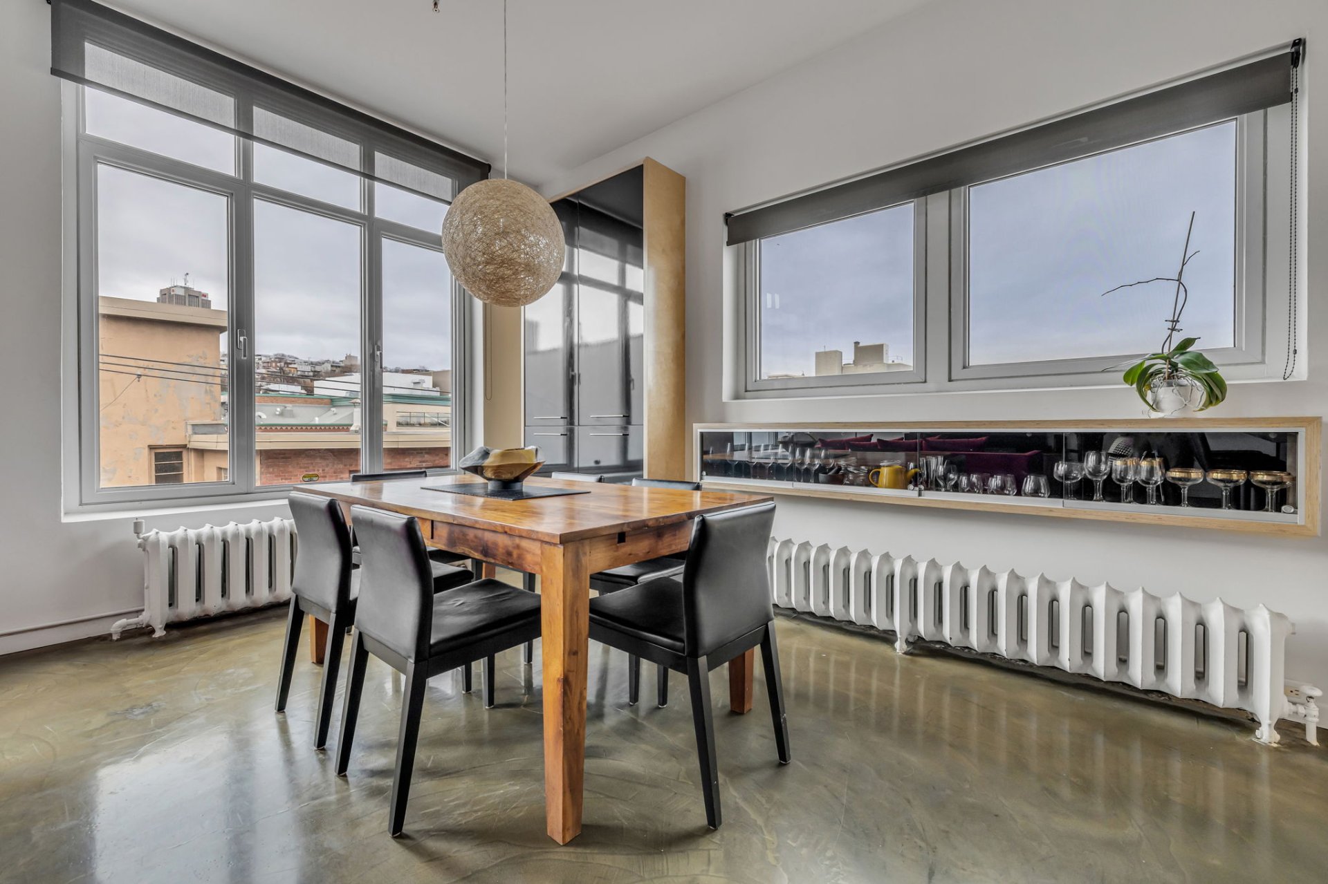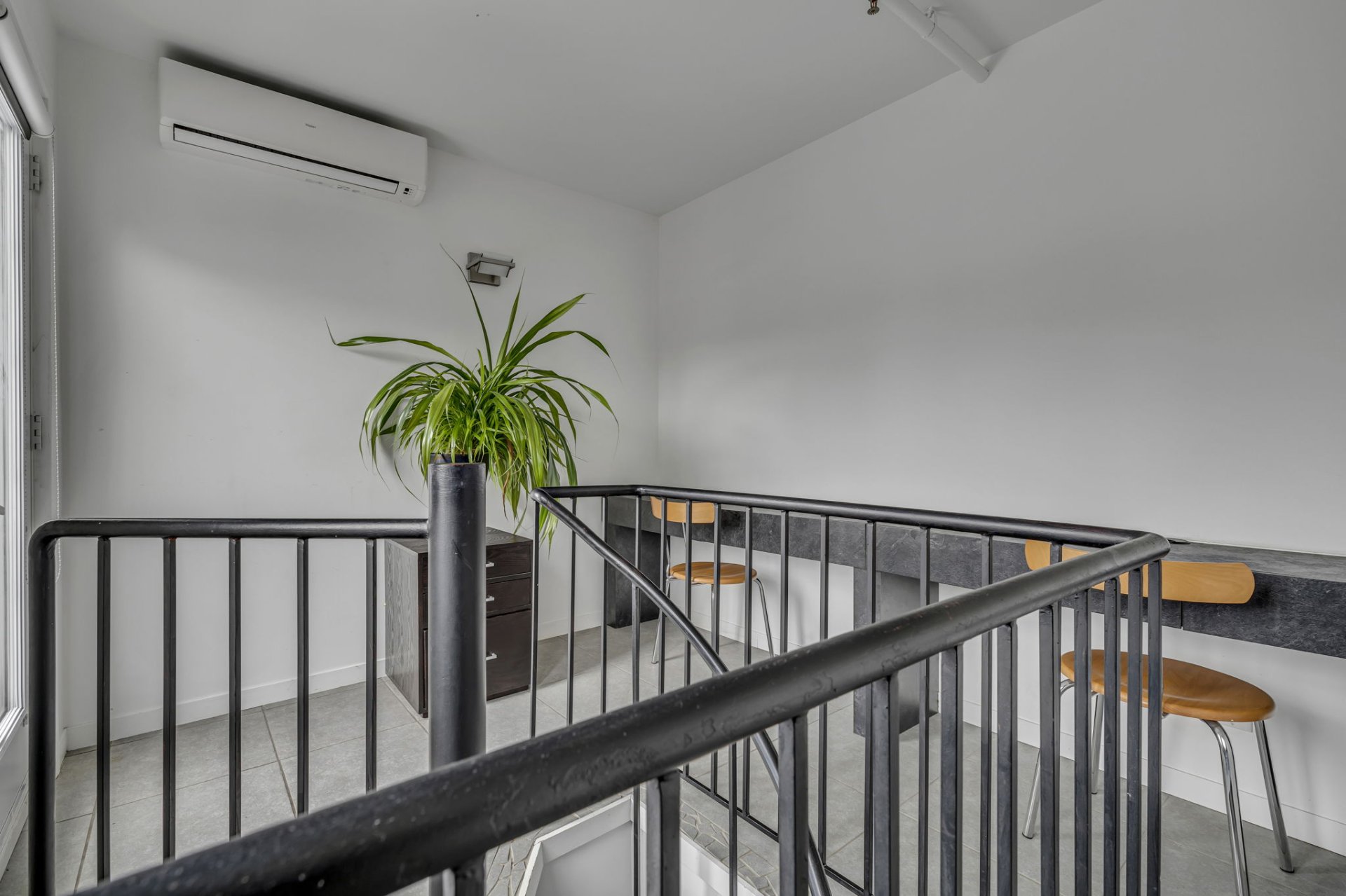 Situé au coeur de la ville! Cette unité unique offre d'immense pièces de vie ainsi qu'une fenestration abondante. L'orientation Sud-Ouest garantit un ensoleillement exceptionnel autant dans l'unité que sur sa terrasse privée. Plafonds de 11 pieds, 2 climatiseurs muraux, un espace bureau au 2e niveau, terrasse privée avec une vue panoramique sur la ville, garage privé, multiples rangements dans l'unité, un rangement au sous-sol. À proximité : Théatres, bibliotheque, restaurants, etc. Profitez de cette occasion rare dans un secteur en demande !